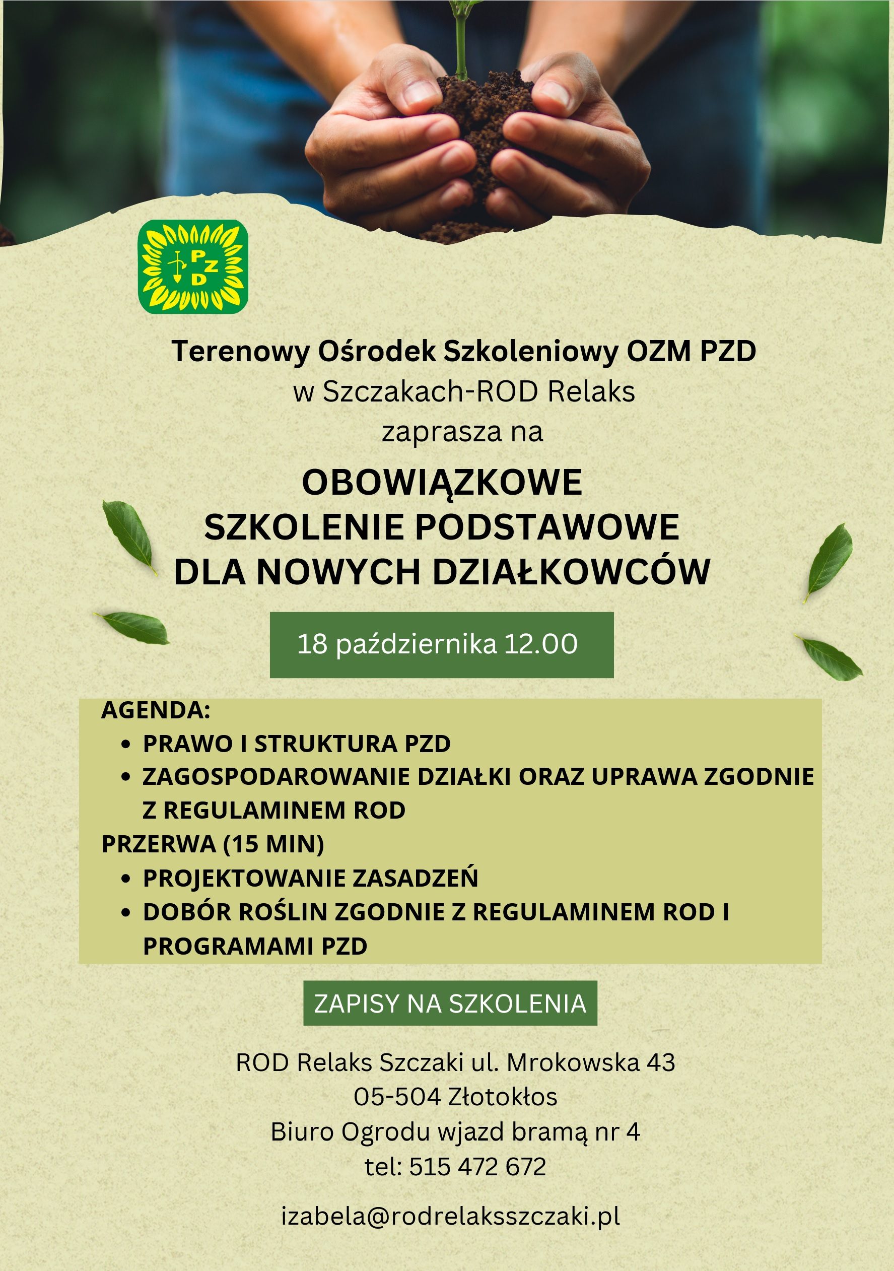 OBOWIĄZKOWE SZKOLENIE PODSTAWOWE DLA NOWYCH DZIAŁKOWCÓW